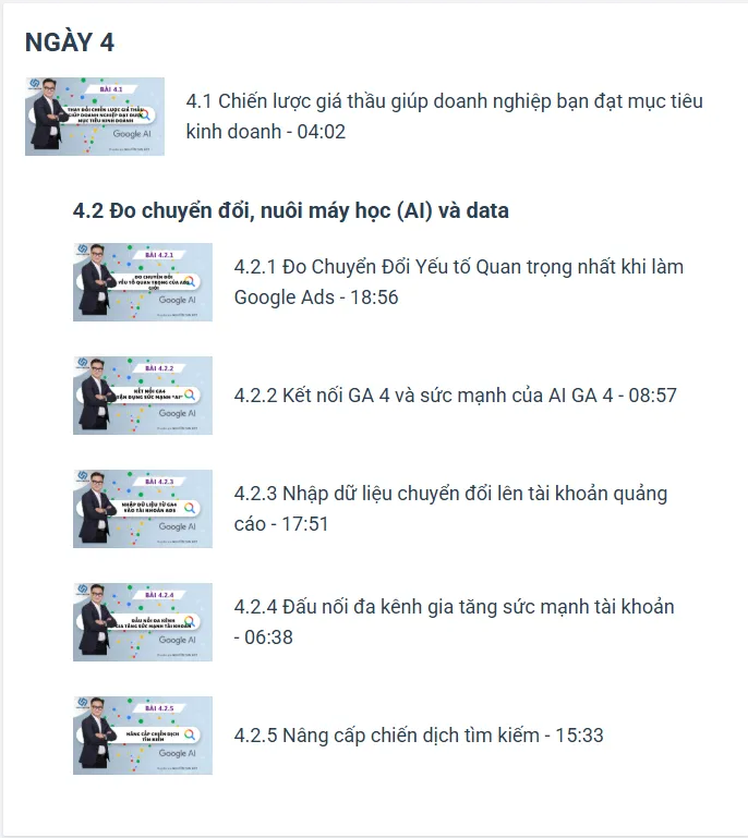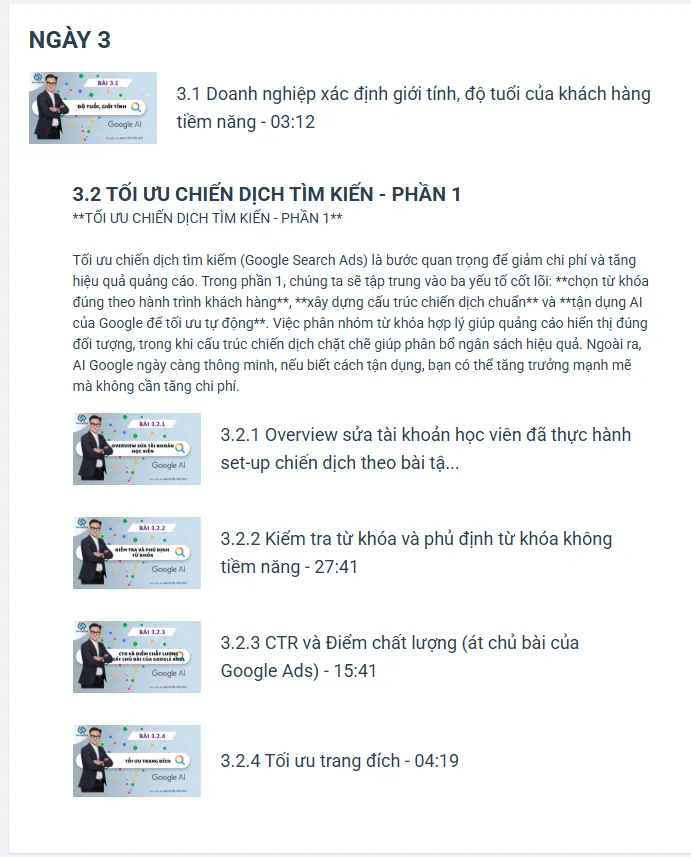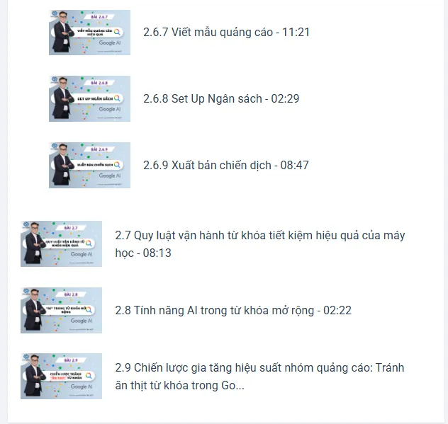 Nội dung khá tinh gọn, vừa chia sẻ tư duy chạy quảng cáo vừa có step by step hướng dẫn chạy quảng cáo Google ads AI, hi vọng tác giả có thêm khoá chuyên sâu hơn như Pmax và tối ưu sau khi chạy campaign